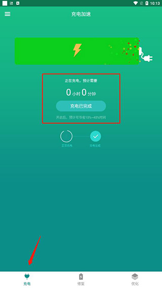 1、充电加速器快捷版为大家提供了充电、修复、优化等功能,其中充电功能可以帮助大家节省充电时间,并且还能显示预计所需充电时间;