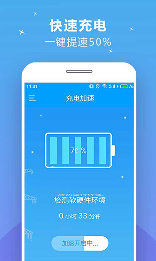 充电加速器快捷版官方版app是一款可以提高手机电池充电效率和延长电池使用寿命的工具,众所周知随着手机使用时长越长,电池的寿命就会越短,所以大家经常会遇到手机充电慢、手机耗电快等问题,所以这个充电加速器快捷版就能有效的解决这些问题。它提供了充电、修复和优化这三大功能,依靠这些功能可以解决遇到的电池优化问题,延长电池使用时长,提高电池充电效率。下载充电加速器快捷版充电时刷视频、看电视、玩游戏、网上购物再也不用担心电池电量不足而遗憾了,你也来试试吧!