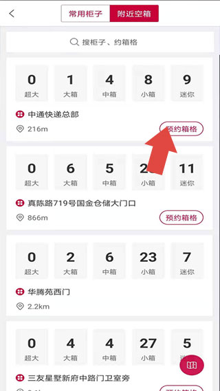 1、下载并打开兔喜,登录并来到首页后,如箱查找当前位置附近快递柜,点击附近空箱