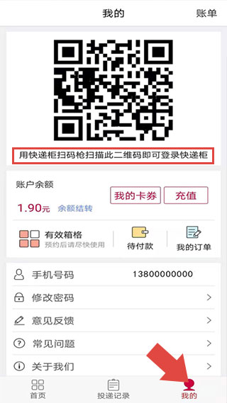 3、需要投递时,返回首页并点击右下角【我的】,并按照上方提示即可完成存储