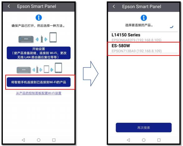 Step2:将手机连接至跟扫描仪同一个 Wi-Fi(无线局域网)后,打开 Epson Smart Panel。
