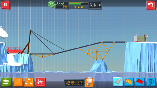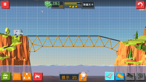 2、您要在这儿挑选最好的修桥塬材料,并结构出最具延展性构造。在整体规划环节,游戏展现简易的3D页面。您能够大开脑洞大开,结构出吓人但见效的桥梁。每一关全是繁杂的迷题,以最有效和最好是的方式去处理。