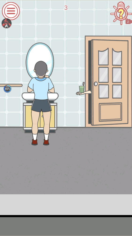 第3关:点击厕所门(点击一次就可以),点击获得牙杯然后递进去,过会再点击伸出来的牙杯;