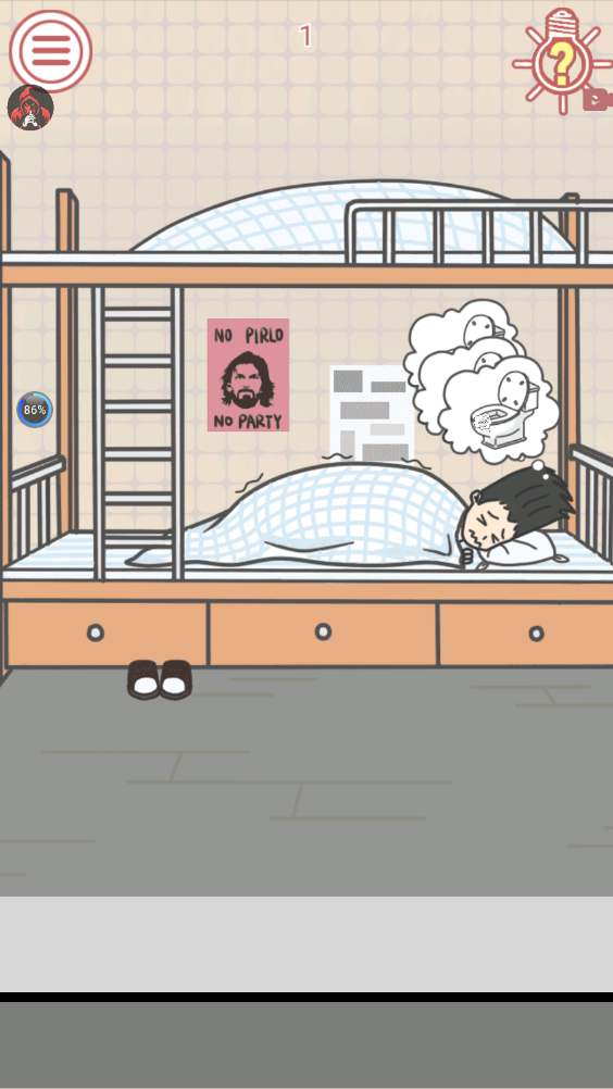 第1关:不需要任何的操作,只需要等到主角起床上厕所 ;
