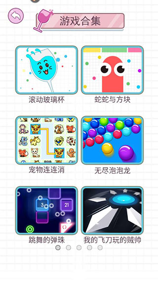 值得一提的是玩家在滚动玻璃杯官方版不仅仅可以玩到这一款游戏,进入游戏合集,这里还有25款游戏等待各位的体验,比如蛇蛇与方块、宠物恋恋消、跳舞的弹珠、我的飞刀玩的贼帅等等,下载一个游戏就能得到25个游戏,任谁看了都想玩!