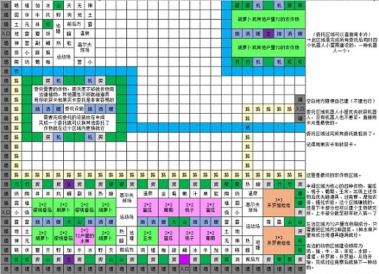 前期先建左边28格胡萝卜(放樱桃番茄的位置)和4格草莓(放水果的位置),一共32格农田,设施有就照着放,前期委托随便找个地方能过就过。然后照着布局图建就可(没有的先不急着建,生物研究所缺钱的时候就关了),主要就是记得过委托和竞赛。