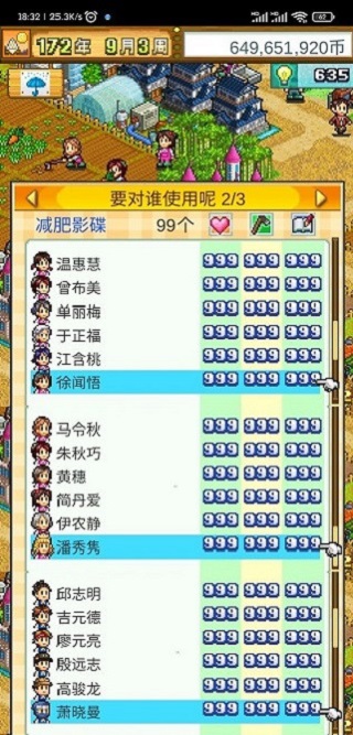 一共24人口,12男12女,使用道具可以吧全属性升到650,后面只能通过便当挂机提升了,三种加属性的便当任意一种都行,并不是加力量的便当只会加力量,所有属性都能加,上限999。