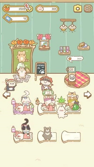 3、画风充满治愈力,和可爱的小猫一起服务客人,打造欢乐放松的环境。