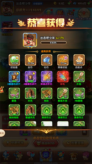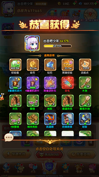 一个是挑战boss,挑战成功后提高挂机奖励,还有额外通关奖励,快速作战可直接额外领取2小时挂机奖励,远航需要消耗远航点,接取任务后经过几小时就有一大堆奖励,快速作战+挂机奖励是角色升级经验的所有来源,不用哭着求带一条龙啦。