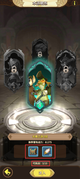当进度超过一定层数后,重置后可以快速向前冲刺一定层数,快速获得刻印和遗物;如果感觉有点吃力,也可以邀请好友的不朽者助力通关。