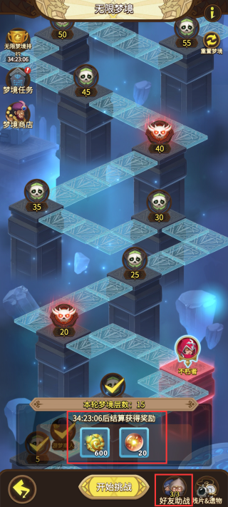 无限梦境的玩法类似于冒险模式的主线关卡,一路推图,击杀敌人获得刻印,通过的关卡越多,最终获得的奖励越好。当前版本中无限梦境是三天结算一次,因此玩家记得注意结算时间,以及关注游戏内的相关调整公告等。