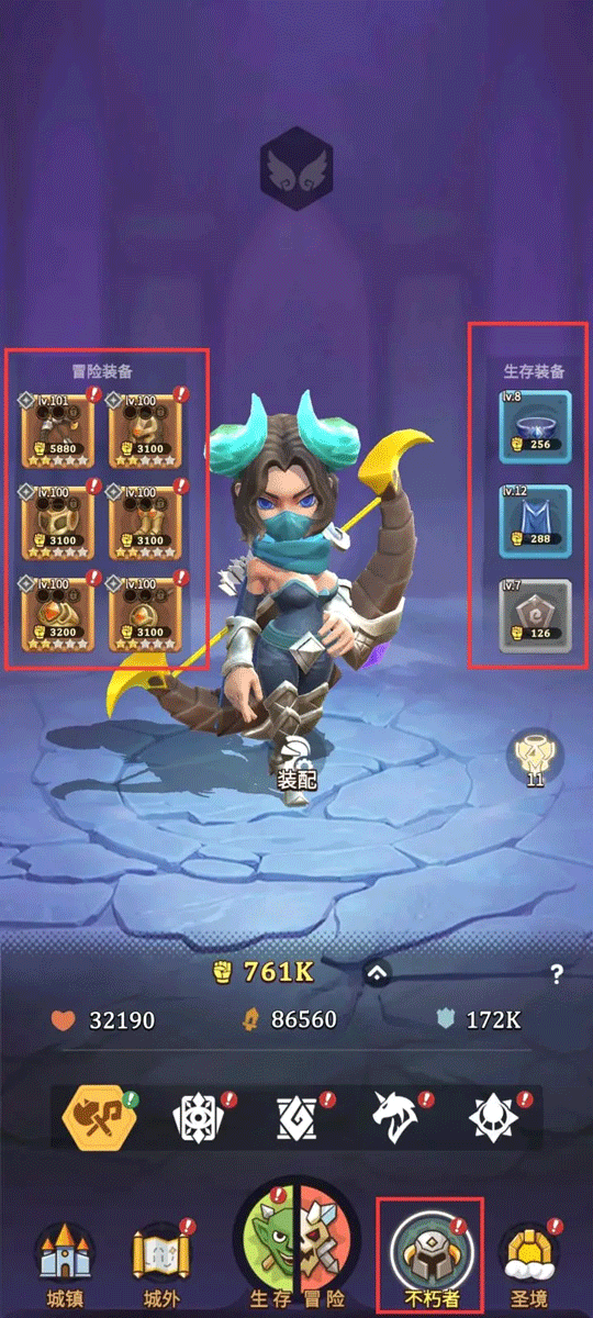 生存装备:生存装备有三个部位,腰带、披风、纹章。生存装备无职业限制,切换角色后不会切换装备,只需要培养一套即可。