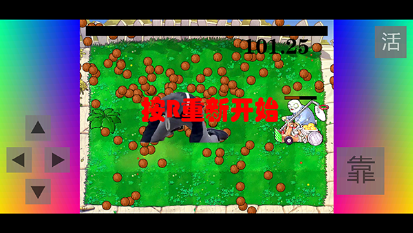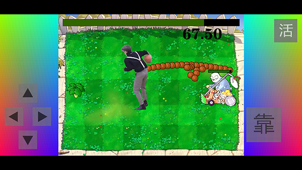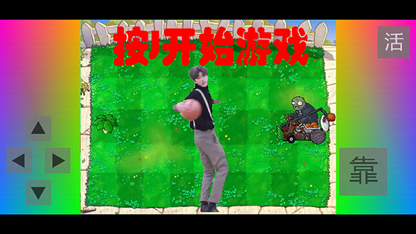 3、左下角轮盘控制坤坤移动,点击“靠”发动铁山靠技能,可以反弹篮球砸死僵尸。