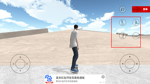 4、根据屏幕上的操作按键来灵活自如的操纵自己的滑板在城市中进行冒险,熟悉掌握各种滑板技术,让游戏角色可以展现各种滑板方面的高超技术。