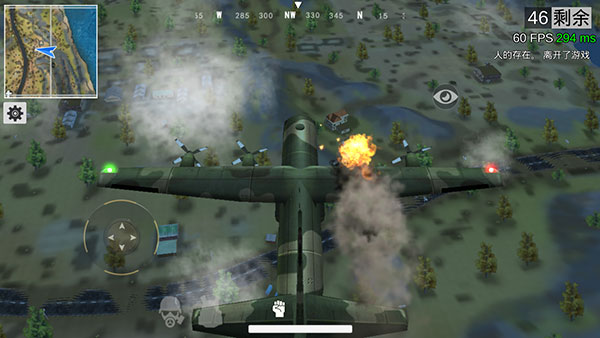 2、跳伞之后,大家可以滑动屏幕左下角的摇杆来控制下降的方向,虽然无法飞行太远,但是可以对飞行方向进行微调。