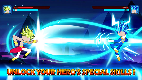 1、游戏以二次元画面为游戏背景,描绘的火柴人悟空形象十分可爱。2、游戏中玩家需要使用技巧去击败对手。
