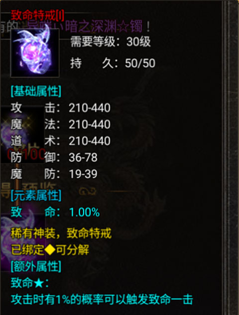 材料合成方式:可在合成-特戒面板中合成致命特戒