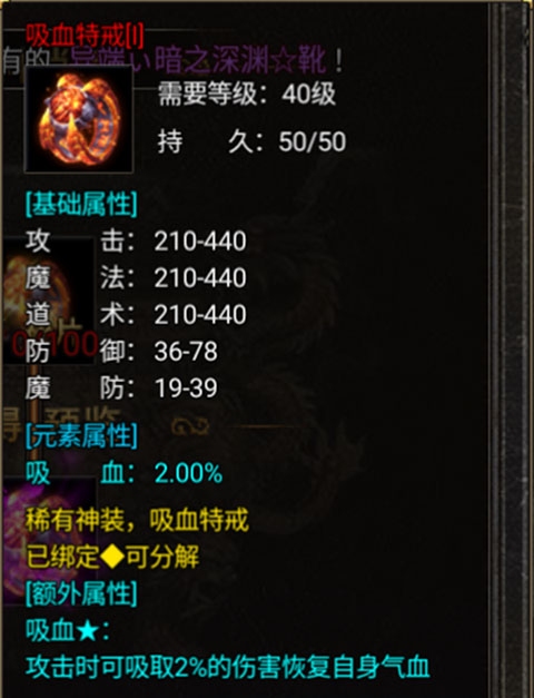 材料消耗:上一阶级吸血特戒+吸血碎片