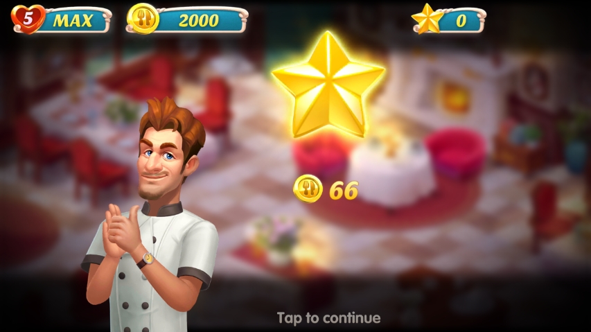 在游戏中,玩家需要通过清除多彩的三消关卡,重新整理并装饰餐厅,比如:更换墙纸、沙发、吧台、柜子、餐桌、地毯等等,还需要制作出更多让顾客满意的食物,只有这个方法才可以不断的扩大自己的餐厅规模,使自己的店面变得越来越大,以此打造出世界闻名的五星级餐厅。