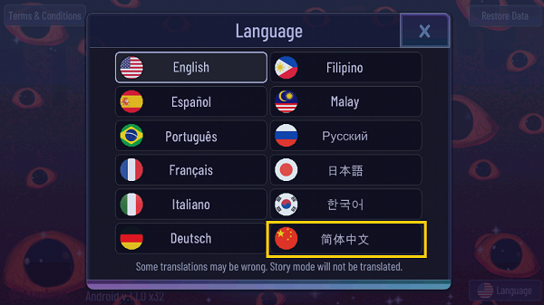 2、在弹出的方框里,选择右下角“简体中文”即可