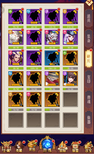 背包里的碎片系统,可将以往集齐的英雄碎片集齐到50片后即可合成对应碎片的武将哦~