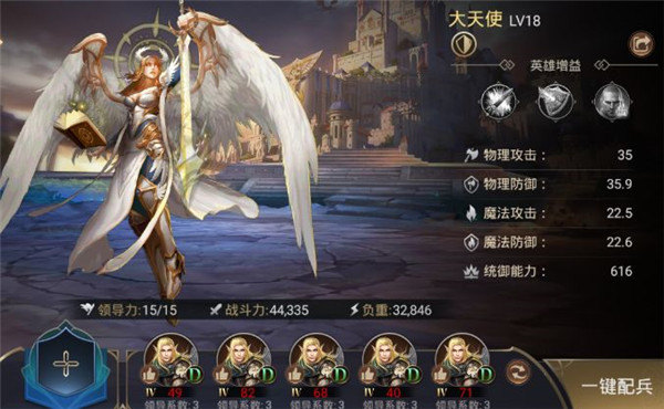 7、士兵选择:因为大天使的三技能无法恢复黑暗单位,所以除去黑暗单位士兵都可以携带。