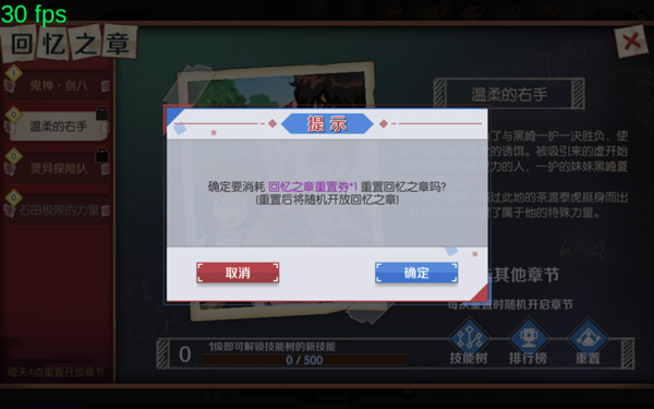 每日开启3个章节任选其一,当日该章节选择后不可再选择其他章节;可以通过“回忆之章重置券”来重置。