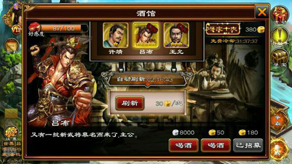 小编比较倾向于这种各种类型的将都用上了的组合。统可以选择刘备或黄忠,武将可以选择张辽、张合、甘宁、许褚、孙权和吕布等,玩家可以根据自己喜好和酒馆刷将的情况选择。智将的话,推荐郭嘉、貂蝉、姜维、诸葛亮、黄月英和荀彧等。