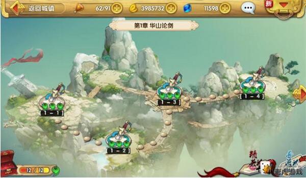 普通关卡:通过关卡开通不同的功能玩法,并且主要产出武学心法,像华山论剑,押镖都都是因为固定的通关章节进行解锁的。
