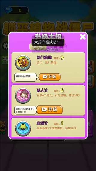 5、当植物出现向上的符号时,玩家可以花费太阳升级植物,升级后的植物攻击能力会增强;