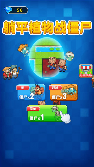 1、打开在本站下载的躺平植物战僵尸后,进入点击你想要的游戏难度开始游戏;