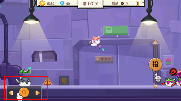 3、通过左方按钮可操控狗头进行移动,通过上下滑动“投”可进行远程射击;