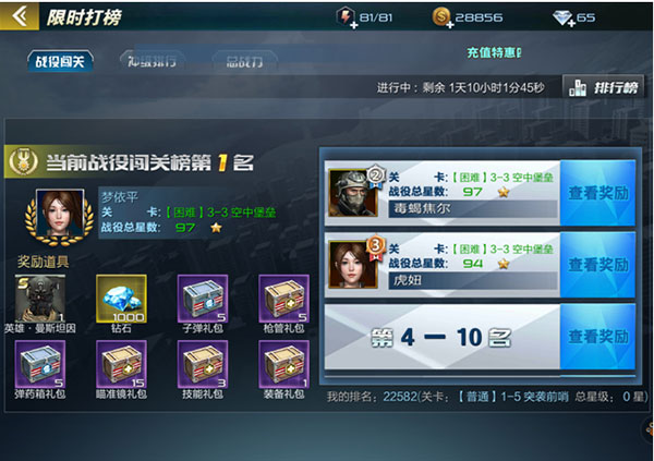 在当前战役中闯关参与排名,也可能获得升级资源。