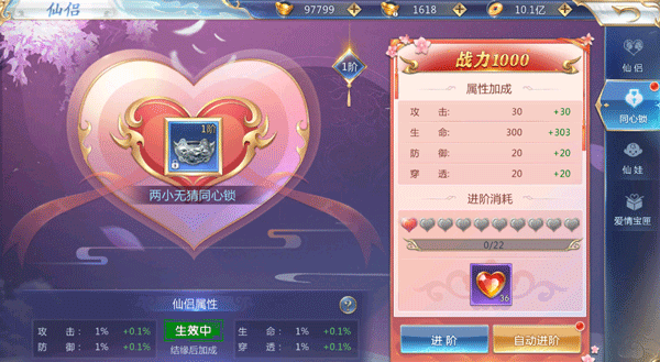 4、同心锁基础属性保留,仍可继续培养,但不激活仙侣属性。