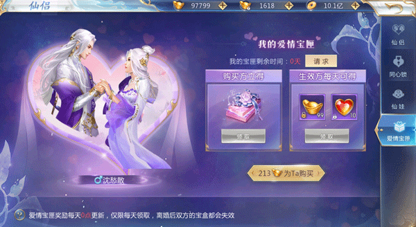 3、爱情宝匣有效期为30天,从获得当日开始计算