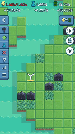 这是一款休闲放置点击模拟手游,在玩家刚进入游戏之后会直奔主题,那就是直接开始生产建造,对于许多新手玩家可能不太好操作,那么今天小编就带玩家朋友们一起来看看关于这款游戏的玩法。1、首先建立风力发电机,你可以通过点击该图标的来出售它产生的电力。