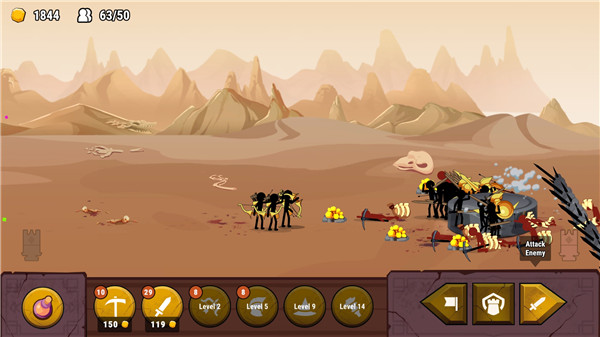 4、战斗不断解锁技能,指挥引导你的火柴人勇士,体验丰富多样的作战模式自由选择敏捷动作。