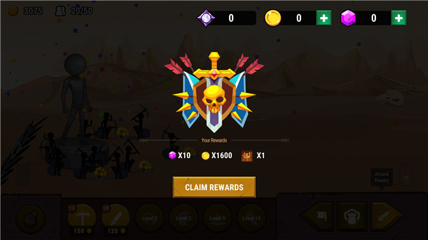 3、玩家可通过解锁技能来让你的火柴人战士更加强大,能够顺利击败游戏关卡里的强大敌人。