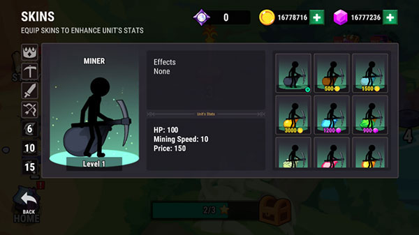 3、选择不同火柴人加入游戏战斗,搭配上不同的魔法技能,让你轻松消灭对手