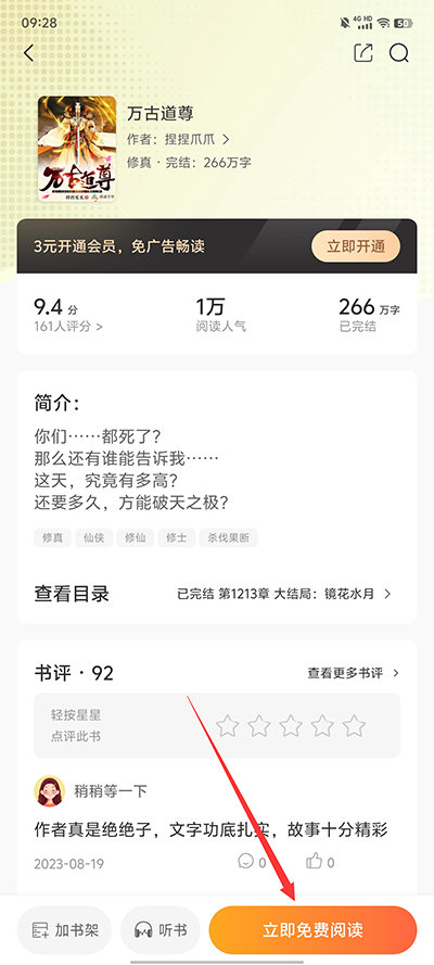 5、最后点击立即免费阅读即可。