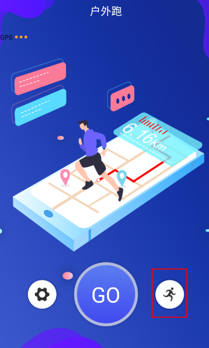 1、下方菜单选择运动选项,点击小人跑步的图标,有多种户外运动供您选择,更好的记录你的运动数据。