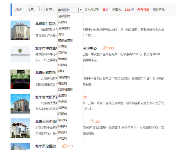 耳鼻喉头颈科、皮肤性病科、中医科、骨科、美容整形科、呼吸内科、口腔科、男科、妇科、计生科、不孕不育科、产科、儿科、肾病内科、乳腺科、减肥科、肛肠科、胃肠科、眼科、脑瘫科、癫痫科、肝病科、肿瘤科、精神心理科等。