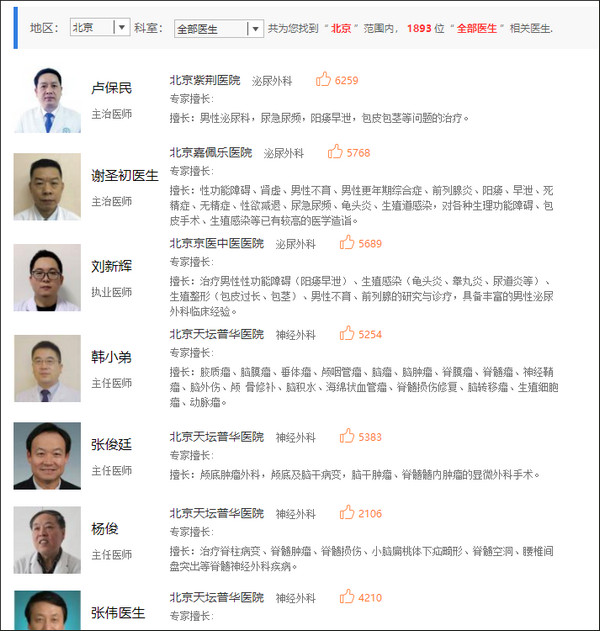 3、选择其中一个医院之后,就要选择就诊的医生了。