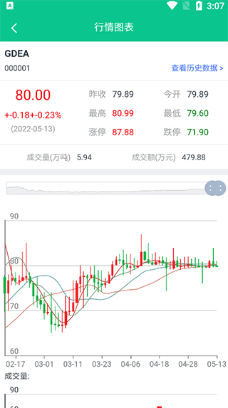 3、点击历史行情我们可以更好的了解分析,这个产品是否有大涨趋势。