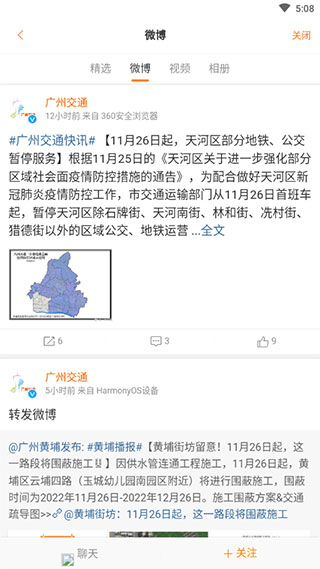 实时播报广州最新交通新闻、城际出行最新资讯、公交调整通告等信息。整合了"交通新闻"、"公共交通"、"城际出行"以及"交委微博"等