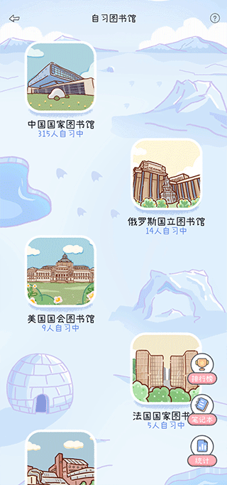 2、这里还可以“云自习”,模拟现实中图书馆自习场景,根据现在的学习阶段选择自习区。