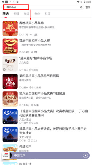4、选择节目,点击全部播放,即可免费在线畅听精彩内容;