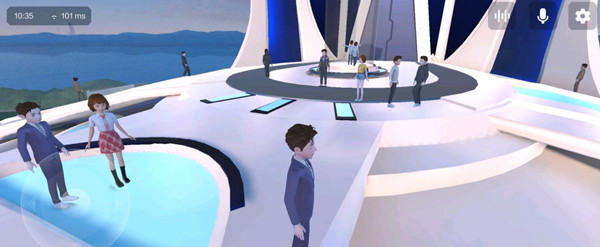 “希壤”虚拟空间多人互动平台展示了在VR虚拟世界中,进行主题演讲、互动论坛、赛事直播与艺术表演的实现可能性。带来更好的视觉效果和使用体验,而且也带来一系列全新的玩法升级。例如:全局的AI语音助手功能、自由的语音交流范围设置、虚拟化身快速生成。