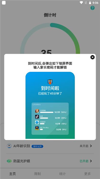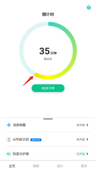 4、进入软件主页界面,家长可以拖动滑块自行设置时长