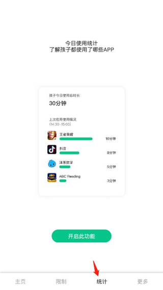 6、点击统计按钮,即可查看手机在小孩手上是使用情况